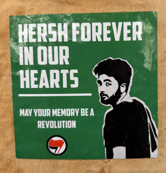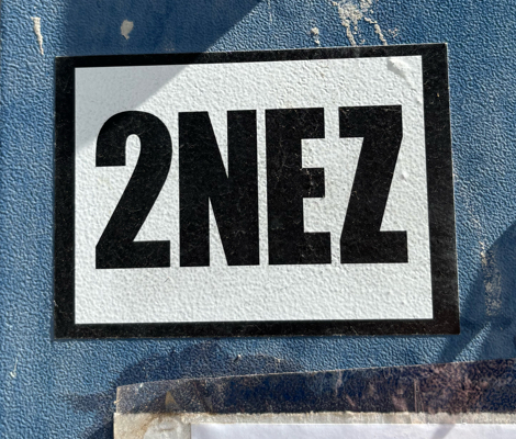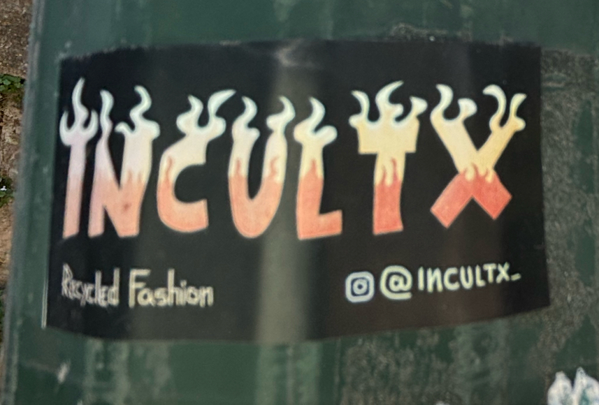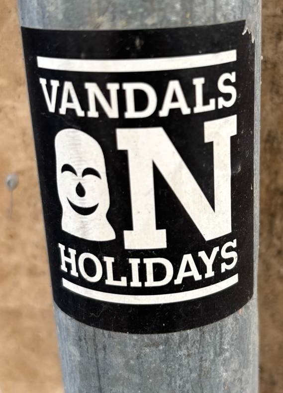 Sticker on the back of a sign
