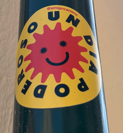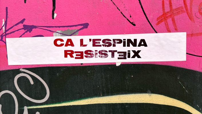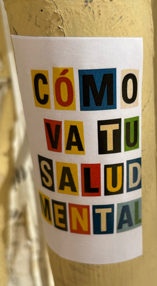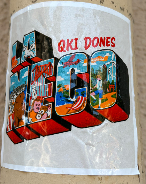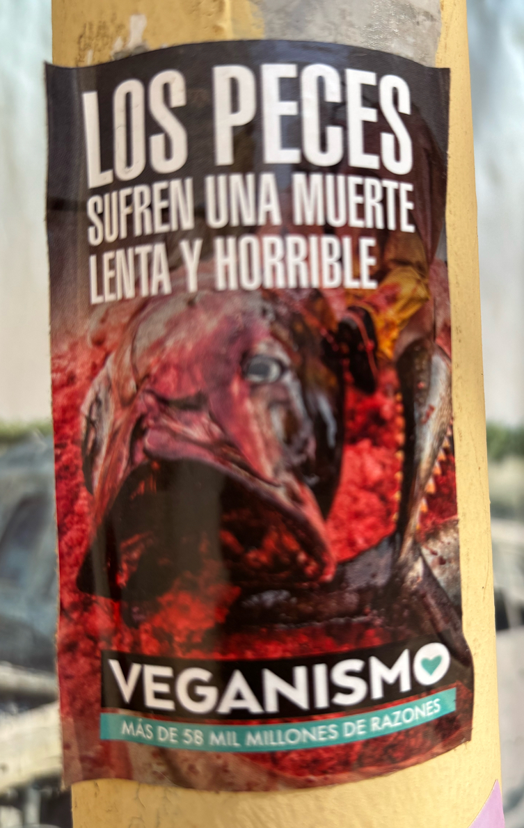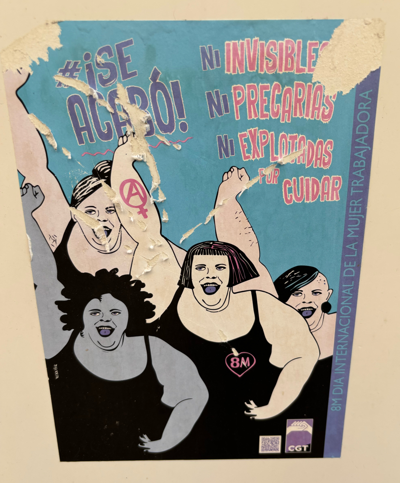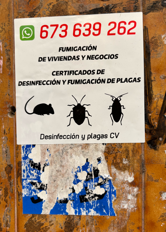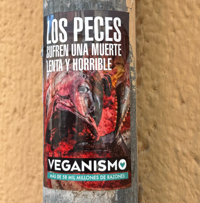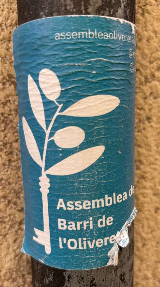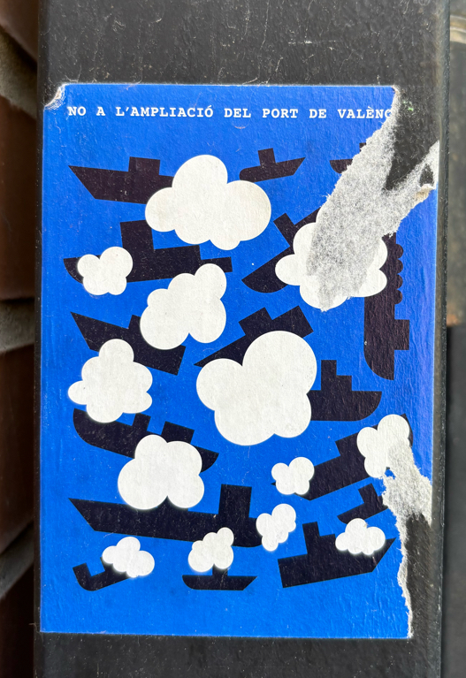 Repeated sticker in the centre of Valencia. On lamppost.