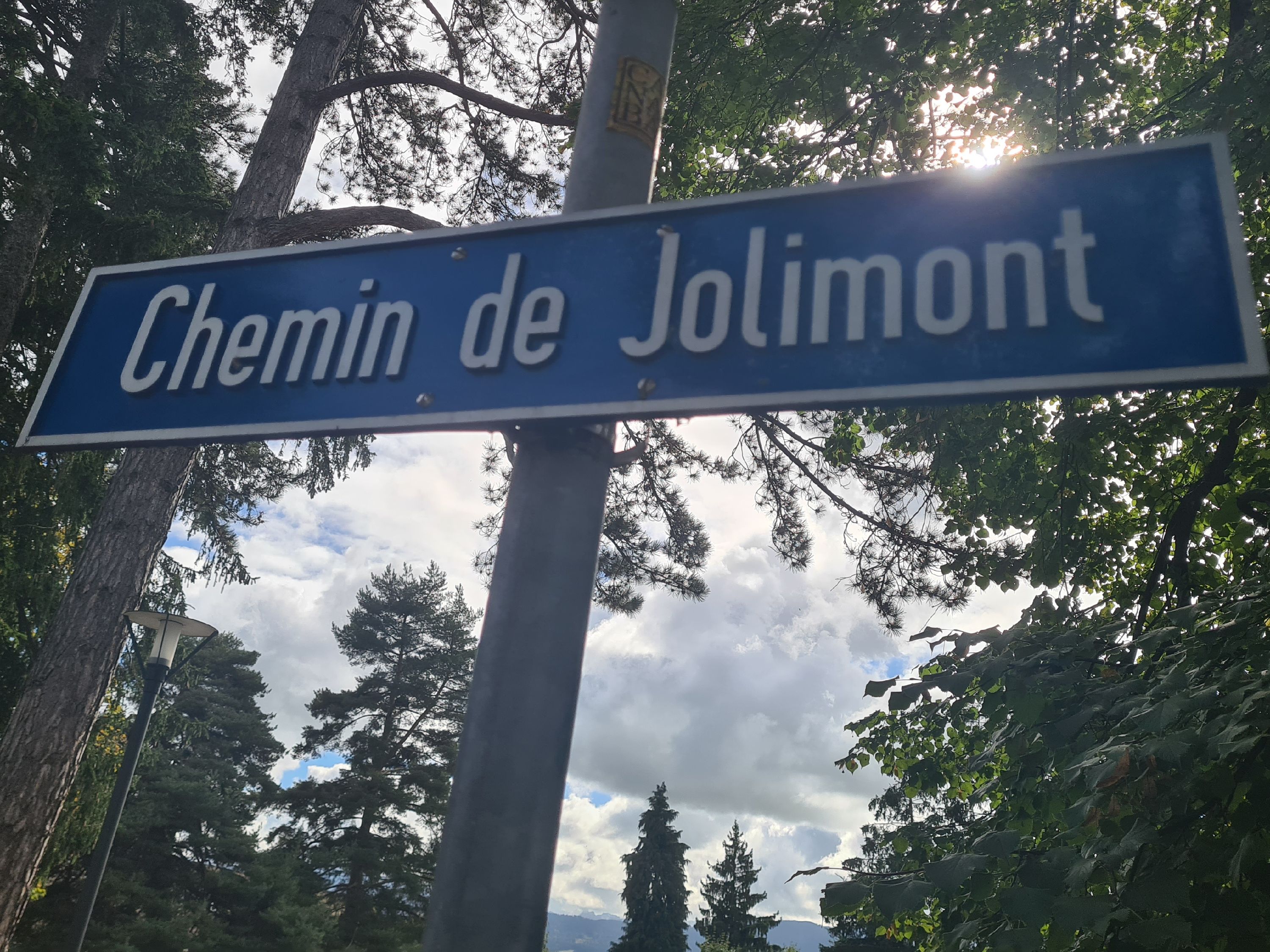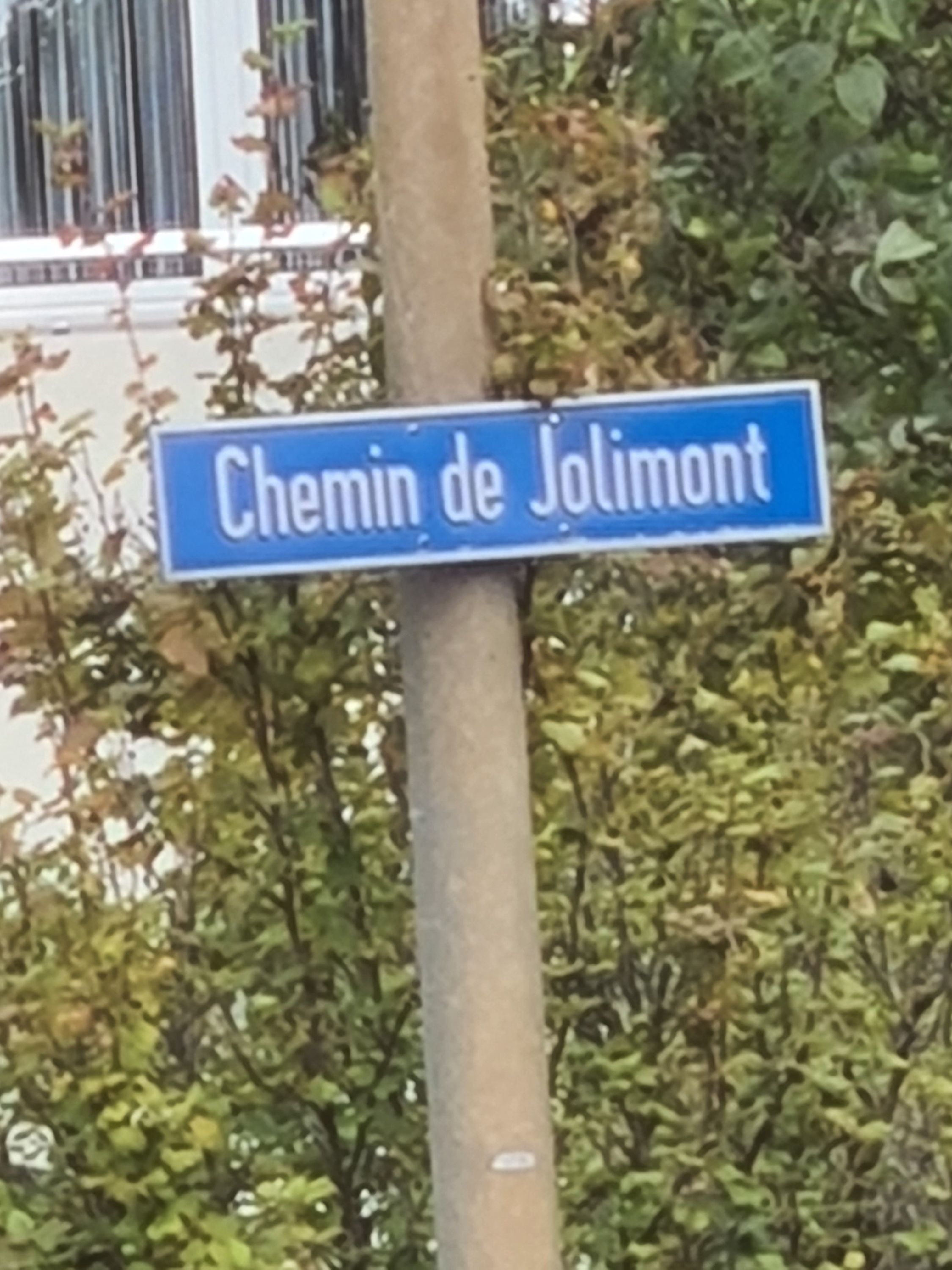 Es befindet sich oberhalb einer Sitzbank an einer Steinwand in der Nähe vom Brunnen.