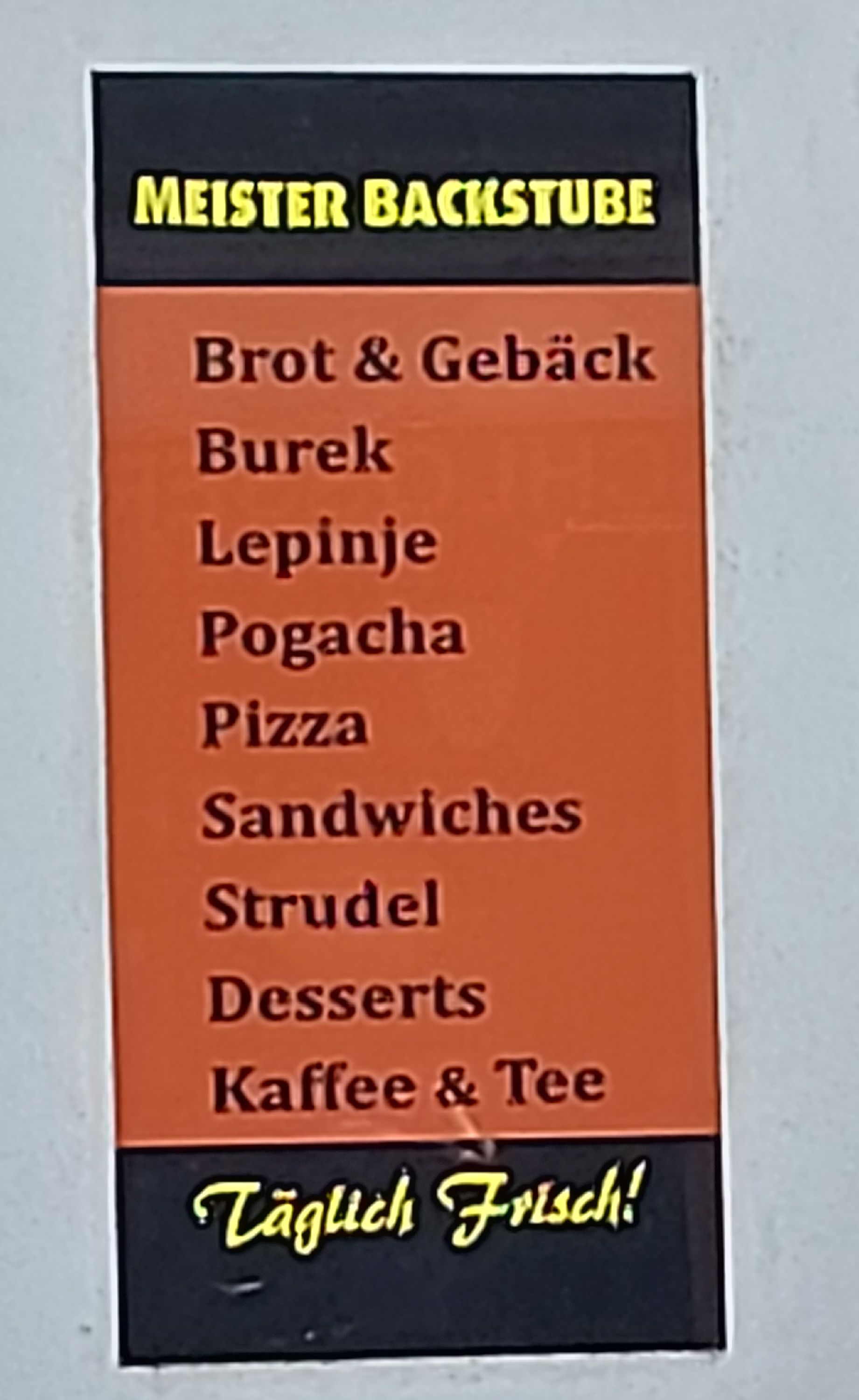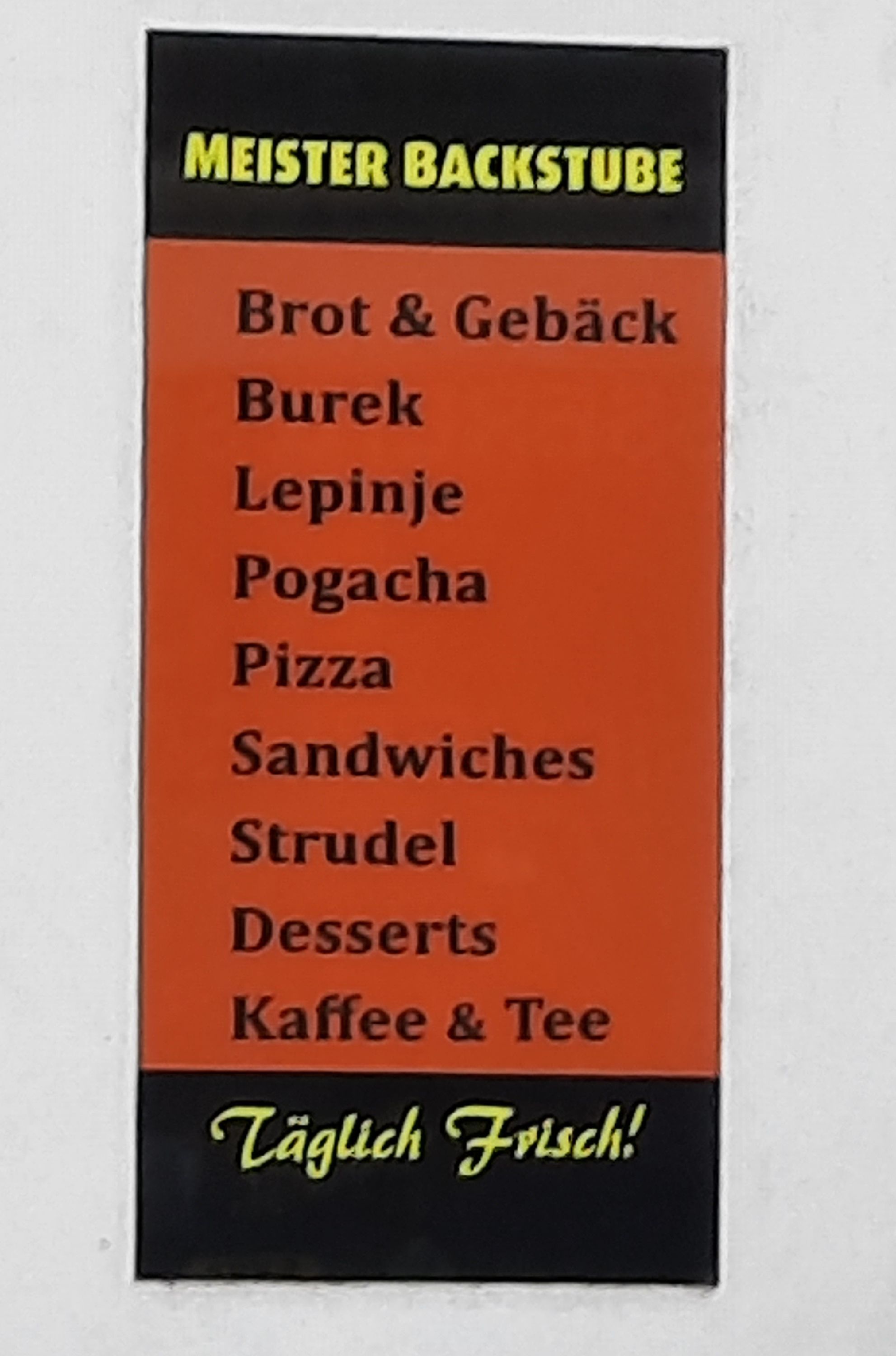 DEU: Meister Backstube, Brot & Gebäck, Pizza, Sandwiches, Strudel, Desserts, Kaffee & Tee, Täglich Frisch! Oth: der Rest