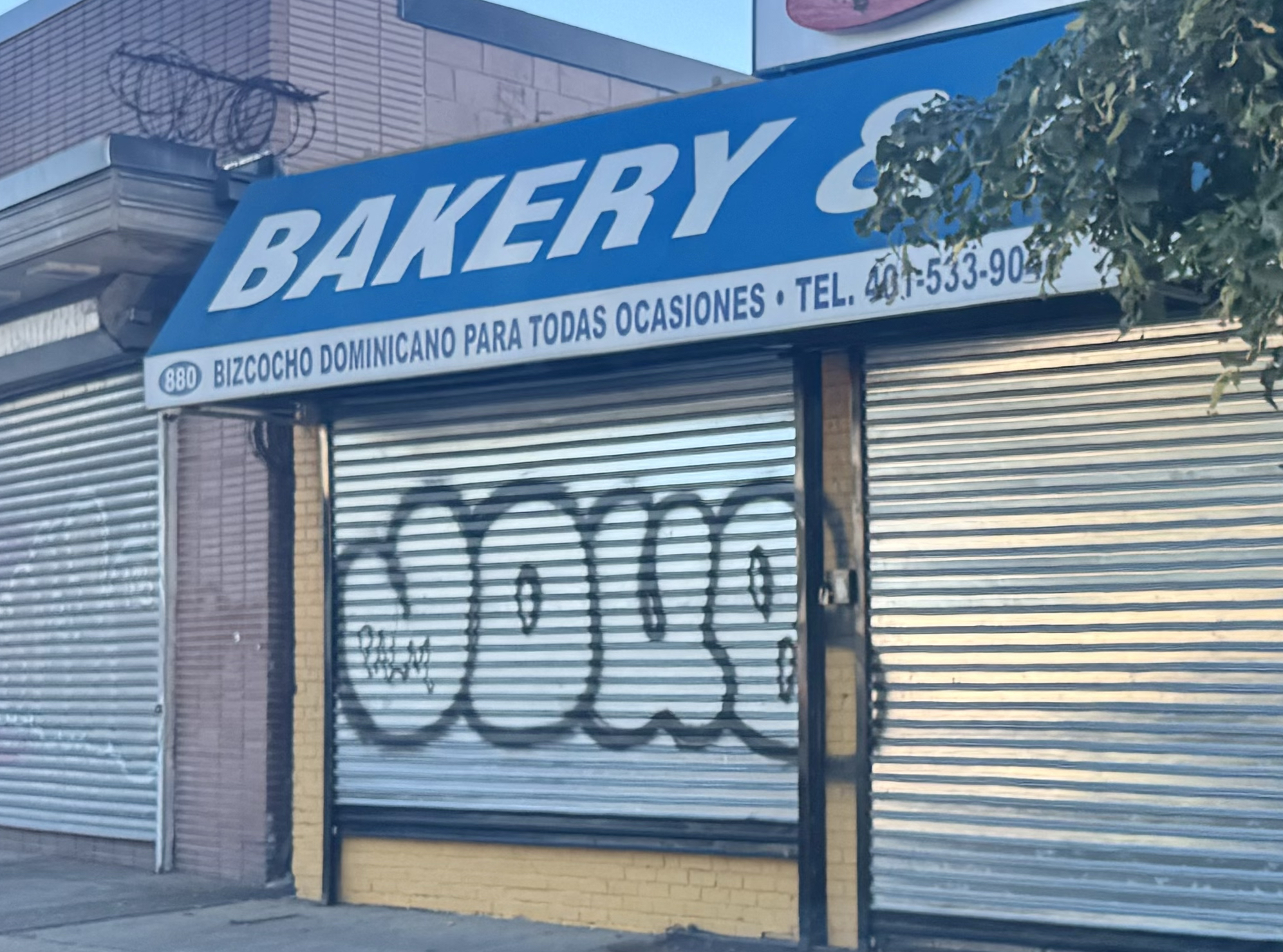 Image of a bakery in South Providence with the word “bakery” in English and the subtext in Spanish (bizcocho dominance para todas ocaciones).