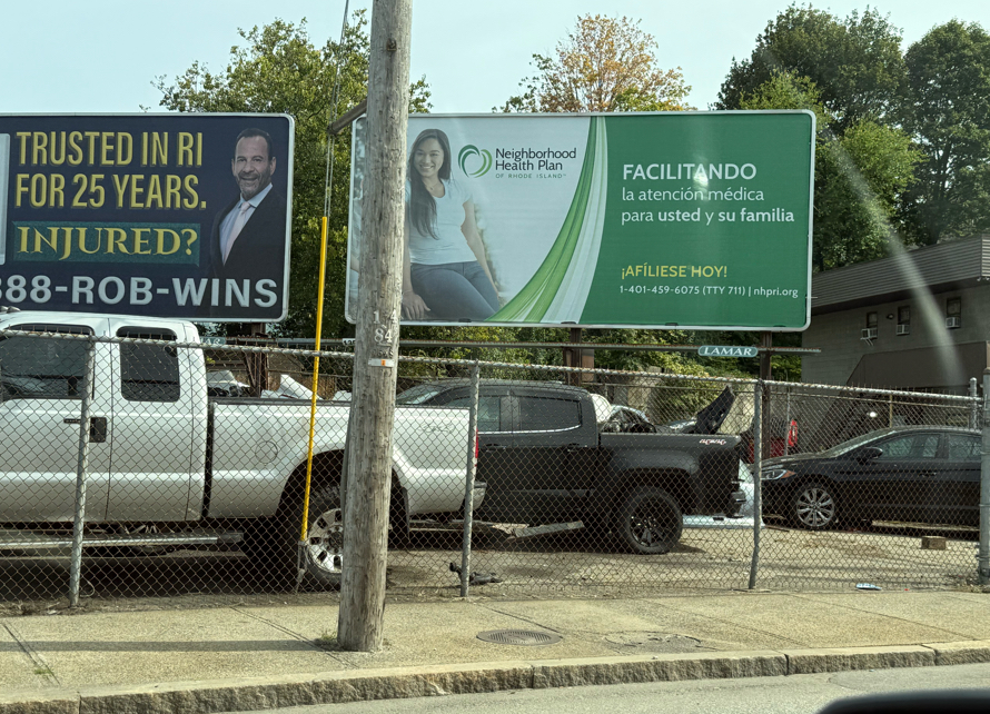 Tire shop in South Providence, name of shop in Spanish, descriptor in English.