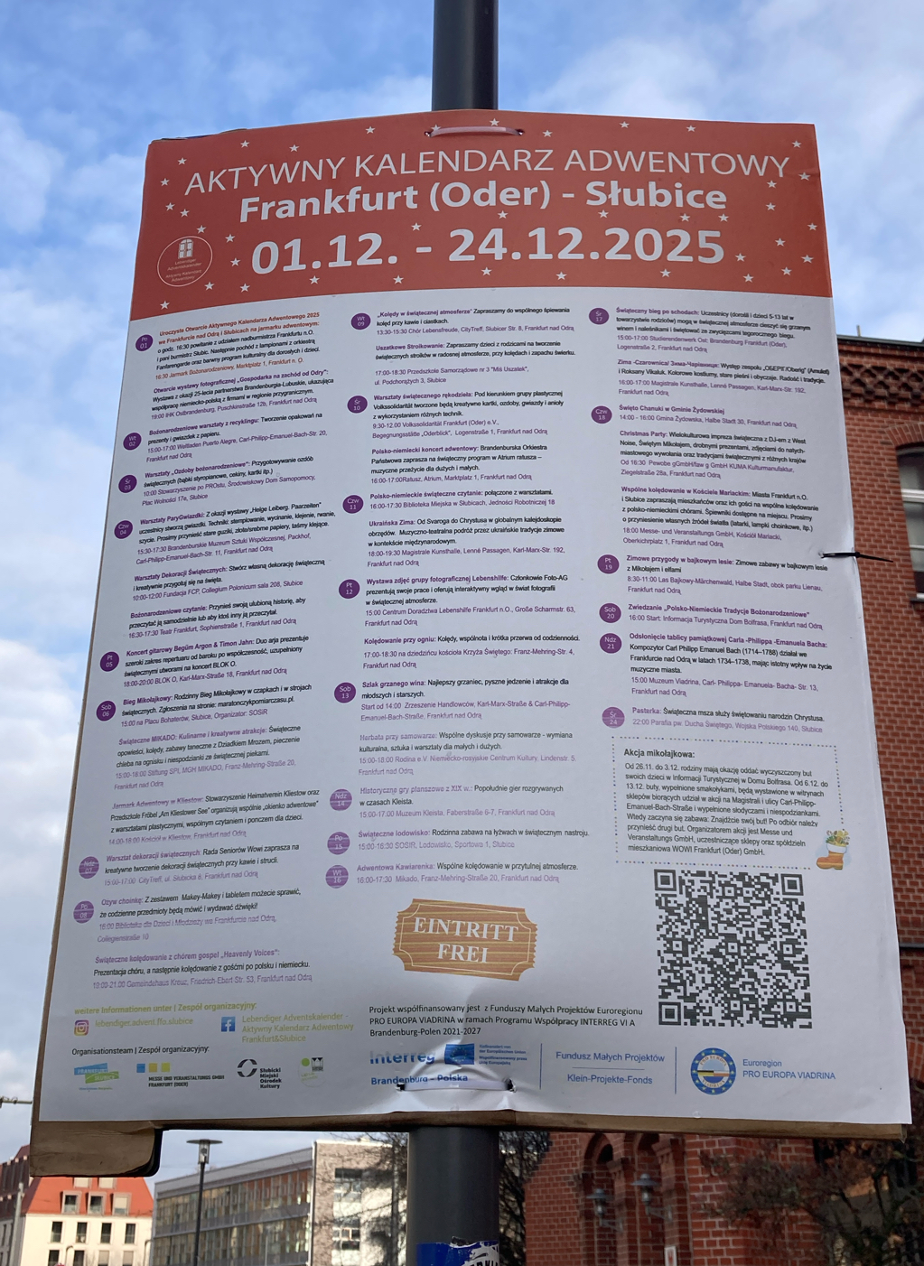Zweiseitiges Schild (eine Seite Informationen auf Deutsch, andere Seite auf Polnisch), two-sided sign (one side information in German, other side Informationen in polish)